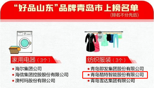 2022.03.143月2日,山東省政府新聞辦召開新聞發(fā)布會(huì),介紹“好品山東”建設(shè)主要內(nèi)容、推進(jìn)情況及下步打算,并發(fā)布了第一批“好品山東”品牌名單,其中,青島酷特智能股份有限公司榜上有名。