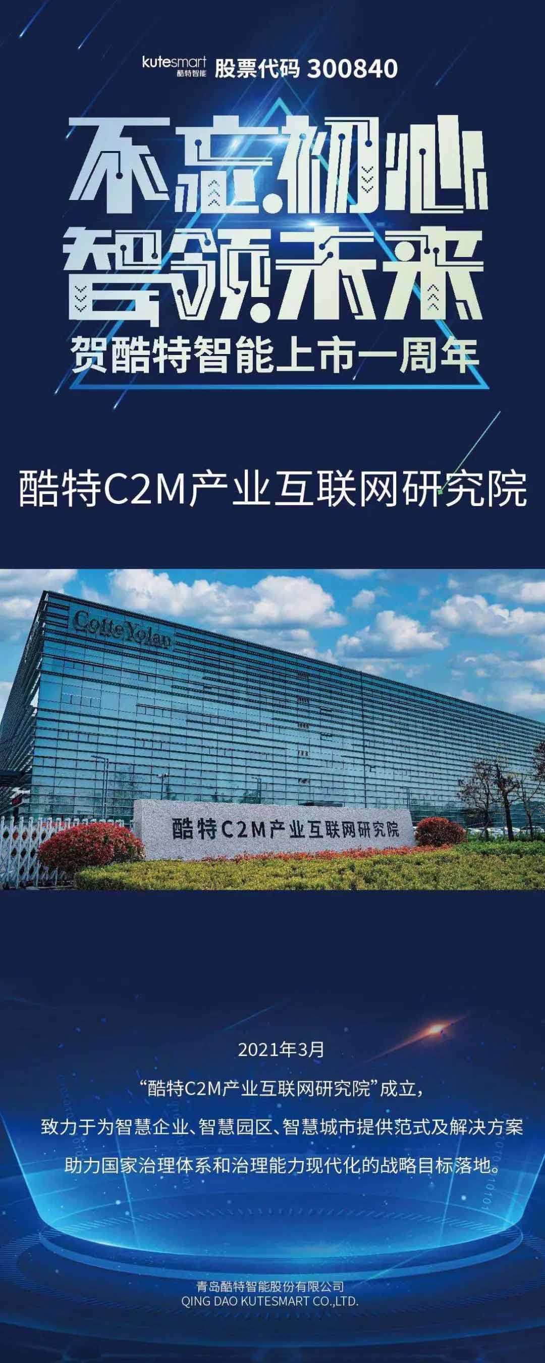 2021年3月,酷特智能成立“酷特C2M產(chǎn)業(yè)互聯(lián)網(wǎng)研究院”,并設立“科學技術創(chuàng)新中心”,專注構建治理體系和治理能力的案例模型,以酷特智能智慧企業(yè)、智慧園區(qū)為基礎,致力于為智慧企業(yè)、智慧園區(qū)、智慧城市提供范式及解決方案,助力國家治理體系和治理能力現(xiàn)代化的戰(zhàn)略目標落地。
