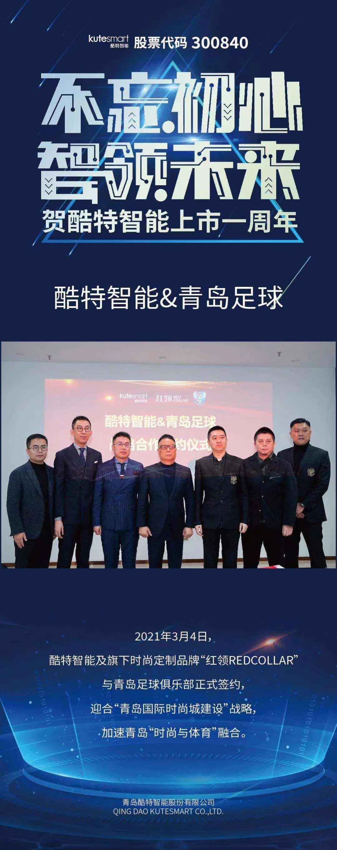 2021年3月4日,酷特智能與青島足球俱樂部正式簽約。酷特智能旗下時尚定制品牌“紅領REDCOLLAR”成為青島足球俱樂部獨家正裝贊助商,“酷特智能”成為青島足球俱樂部醫(yī)療防護物資贊助商。多年來,酷特智能一直不忘助力中國體育的責任擔當,此次與青島足球俱樂部合作,旨在迎合“青島國際時尚城建設”戰(zhàn)略,加速青島“時尚與體育”的融合。