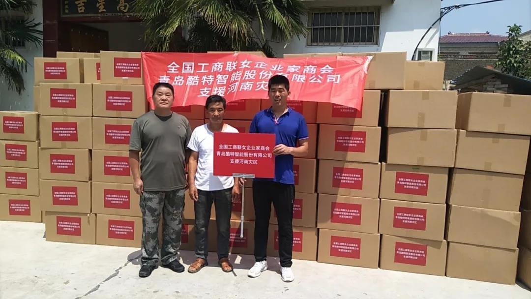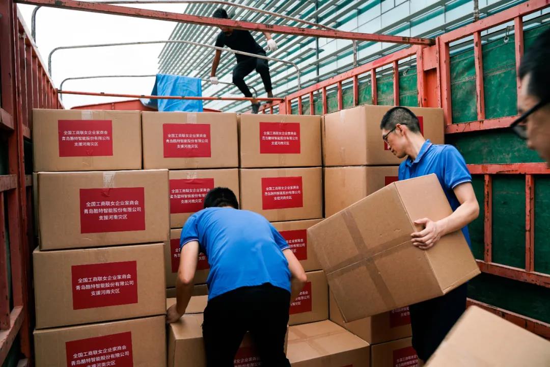 近日,河南遭遇千年一遇強降雨,暴雨導致鄭州、焦作等城市發(fā)生嚴重內澇,部分鐵路停運、電力供應中斷,造成重大財產損失。受災地區(qū)群眾的安危時刻牽動著全國人民的心,一方有難,八方支援!災情發(fā)生第一時間,在全國工商聯(lián)女企業(yè)家商會的組織協(xié)調下,酷特智能緊急馳援河南,為災區(qū)一線送去救災物資。