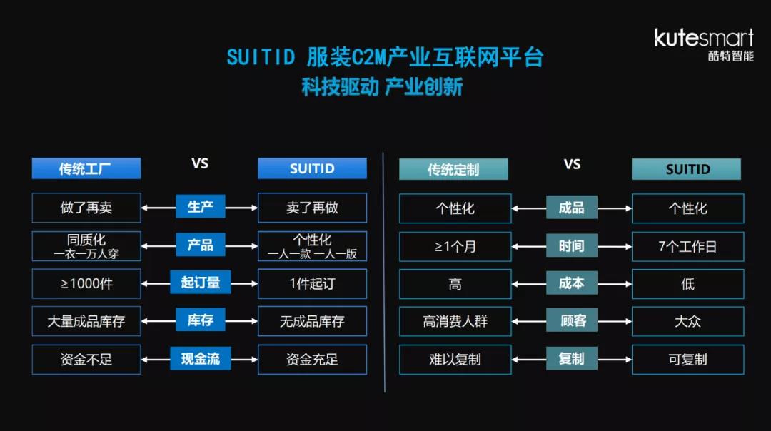 這種自信源于酷特智能十年磨一劍形成的核心能力——智能制造、個(gè)性化定制解決方案和數(shù)字化治理體系,這是酷特服裝C2M產(chǎn)業(yè)互聯(lián)網(wǎng)平臺(tái)的核心支撐。