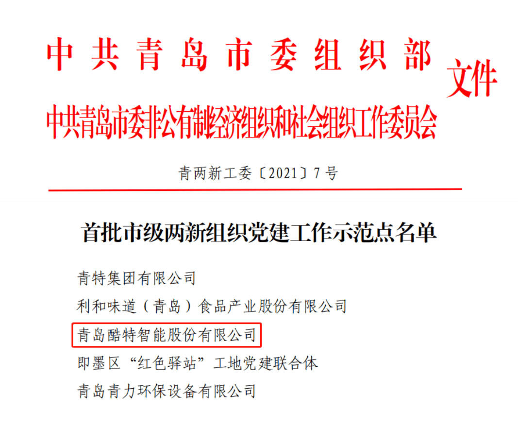 2022年初,酷特智能曾入選“青島首批市級兩新組織黨建工作示范點”,這是酷特智能黨支部“堅持黨建統(tǒng)領,貢獻酷特智慧”的使命導向結果。