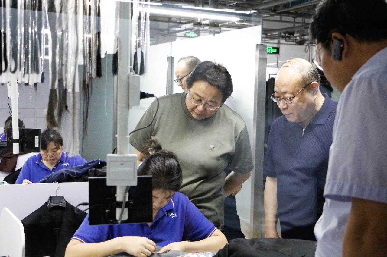 調(diào)研現(xiàn)場,“四進”工作隊等一行領(lǐng)導(dǎo)先后在個性化定制體驗中心、智能工廠和黨建展覽館進行了實地考察,現(xiàn)場體驗個性化定制設(shè)計和大數(shù)據(jù)采集標準化流程,參觀了酷特智能從普通流水線管理到精益制造再到智能制造轉(zhuǎn)型升級的全過程。