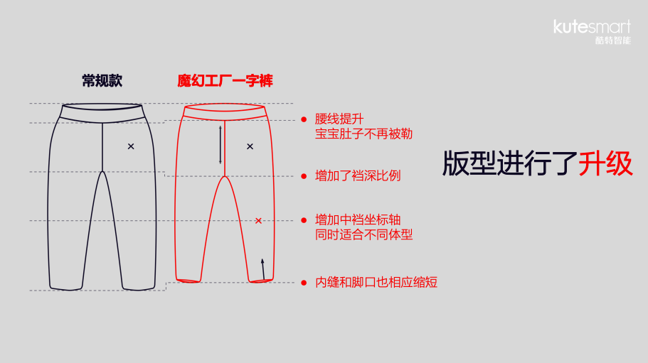 “所以,進軍童裝市場,我們是做了充足的準(zhǔn)備的?!被貧w產(chǎn)品本身,保證童褲的舒適性是重中之重。為此,魔幻工廠還專門設(shè)立了童褲研究所,推出輕定制童褲——一字褲,這是一種專為中國孩子定制的童褲版型,而一字(Easy)代表著舒適和自由。